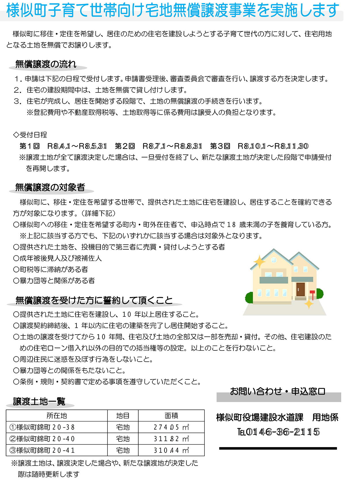 様似町子育て世帯向け宅地の無償譲渡事業について