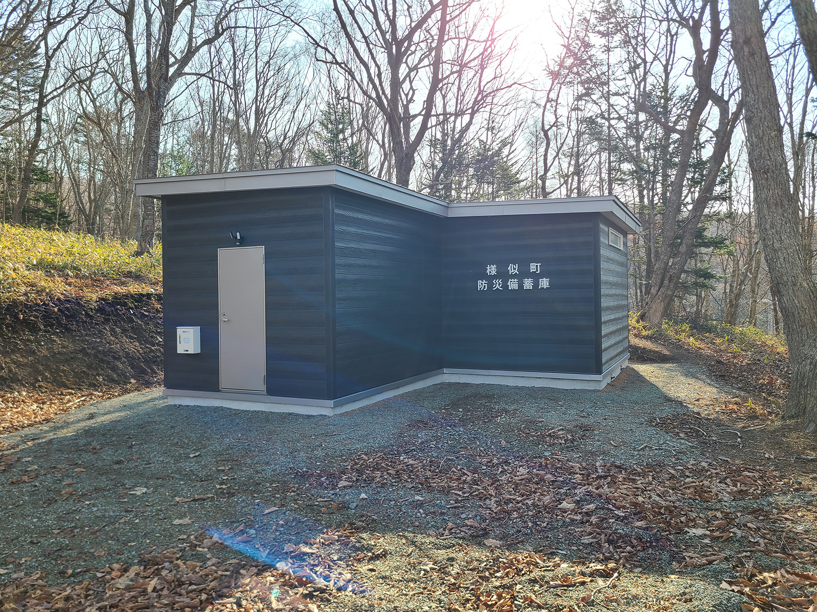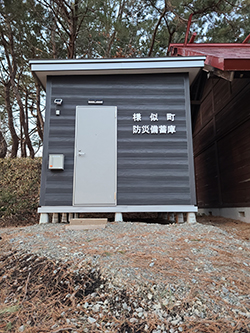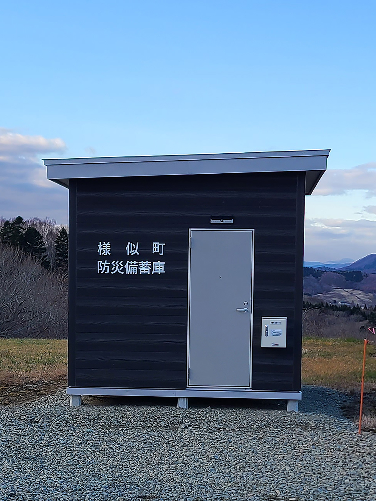 町では、令和5年度から令和7年度の三箇年計画で町内の津波避難場所に防災備蓄庫の建設及び収容する備蓄品の整備を行っています(一部箇所は既存の建物を活用)。