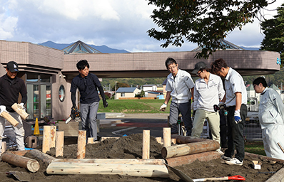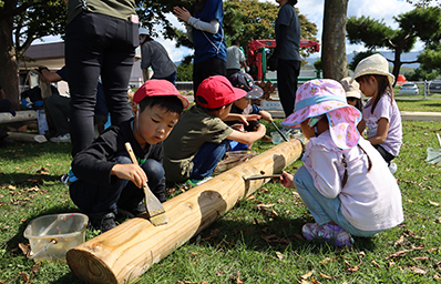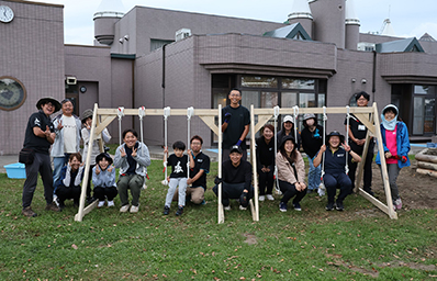 - 6月に引き続き、園庭環境の充実を図るため、保育環境研究家木村歩美氏にご指導いただき、様似建成会、幼児センター保護者会のご協力のもと、砂場環境改善、やさしいブランコの作成作業を行いました。