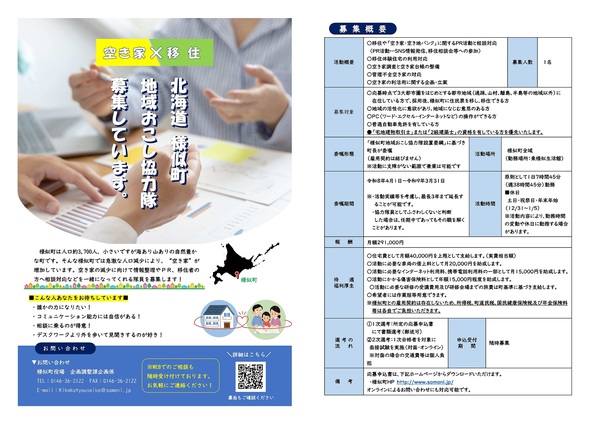 それらを解決するため、町内の物件情報の収集、移住や「空き家・空き地バンク」に関するPRや相談対応などのワンストップ窓口を担うとともに、空き家調査や移住体験住宅の利用対応など、様似町の『空き家対策』と『移住定住』の促進に一緒に取り組んでいただける方を募集しています!