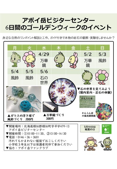 アポイ岳ビジターセンター6日間のゴールデンウィークのイベントのお知らせ