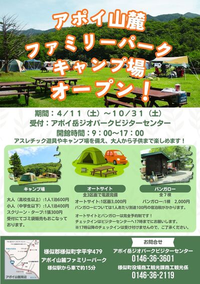 令和8年度のキャンプ場及びパークゴルフ場は、4月11日(土)にオープンいたします。